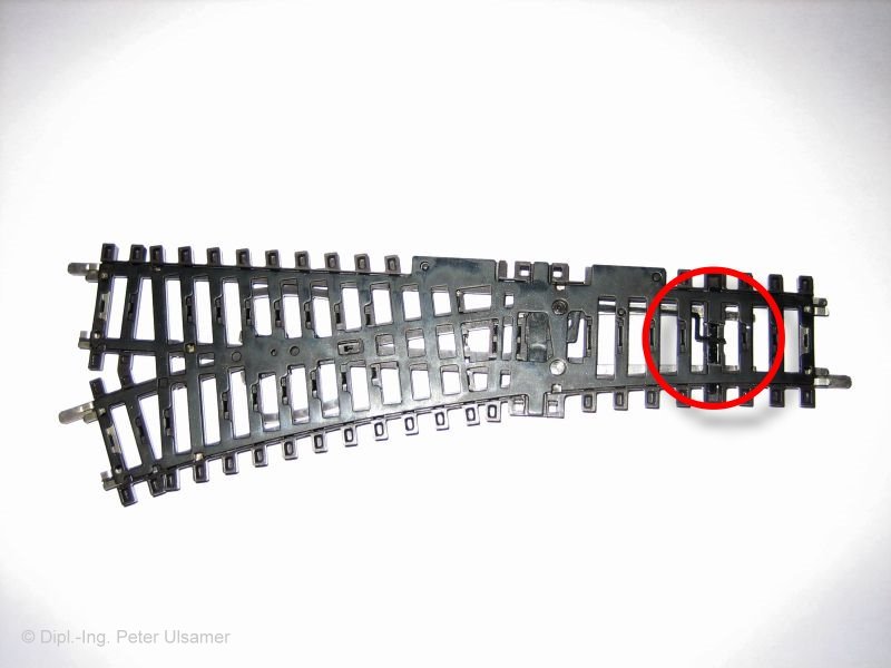 - Die Stellstange greift direkt von unten in die Stellschwelle, und bewegt damit die Weiche von der einen in die andere Endlage